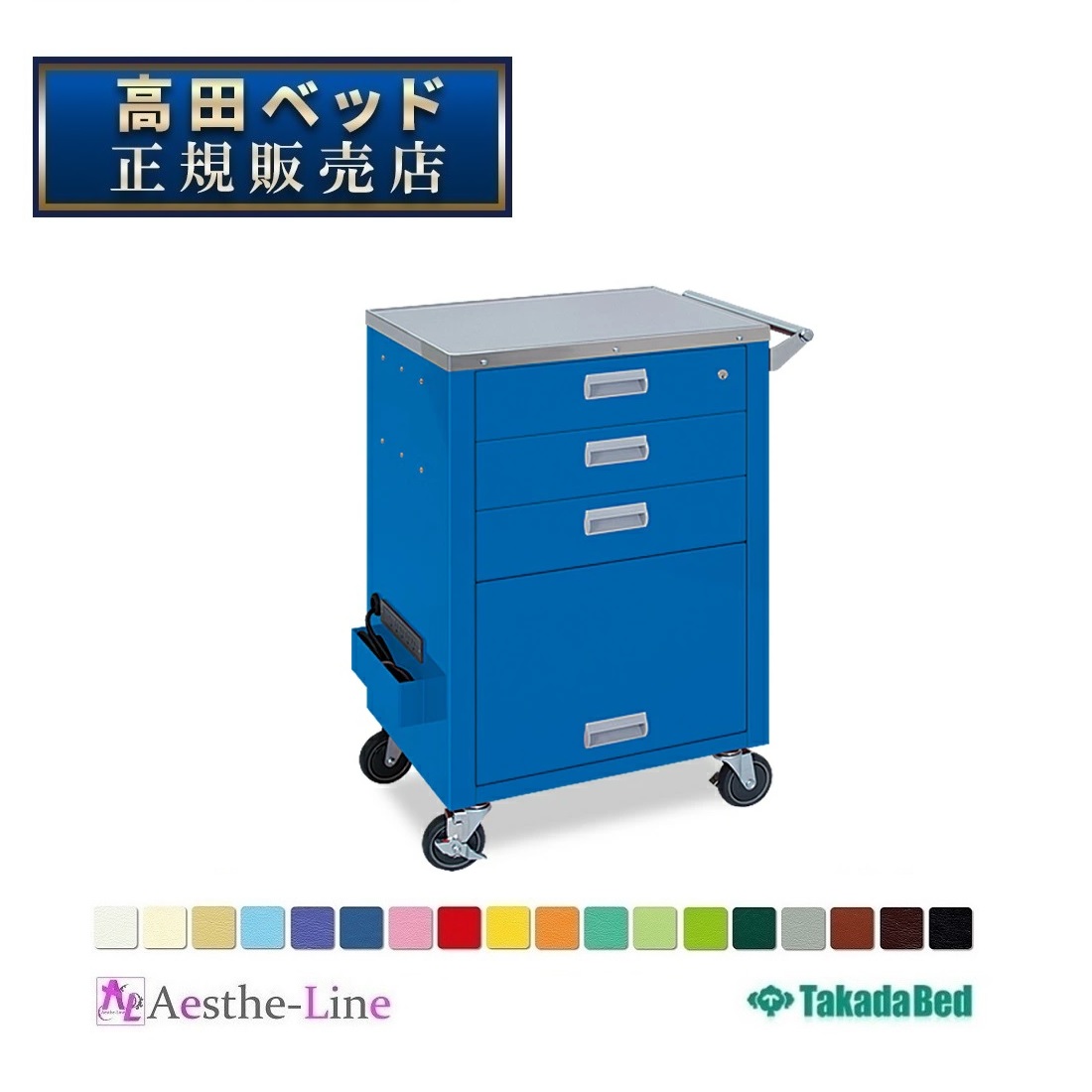 ■シンプルな機能性ながら急変時に必要物品を直ぐに使える緊急カート。