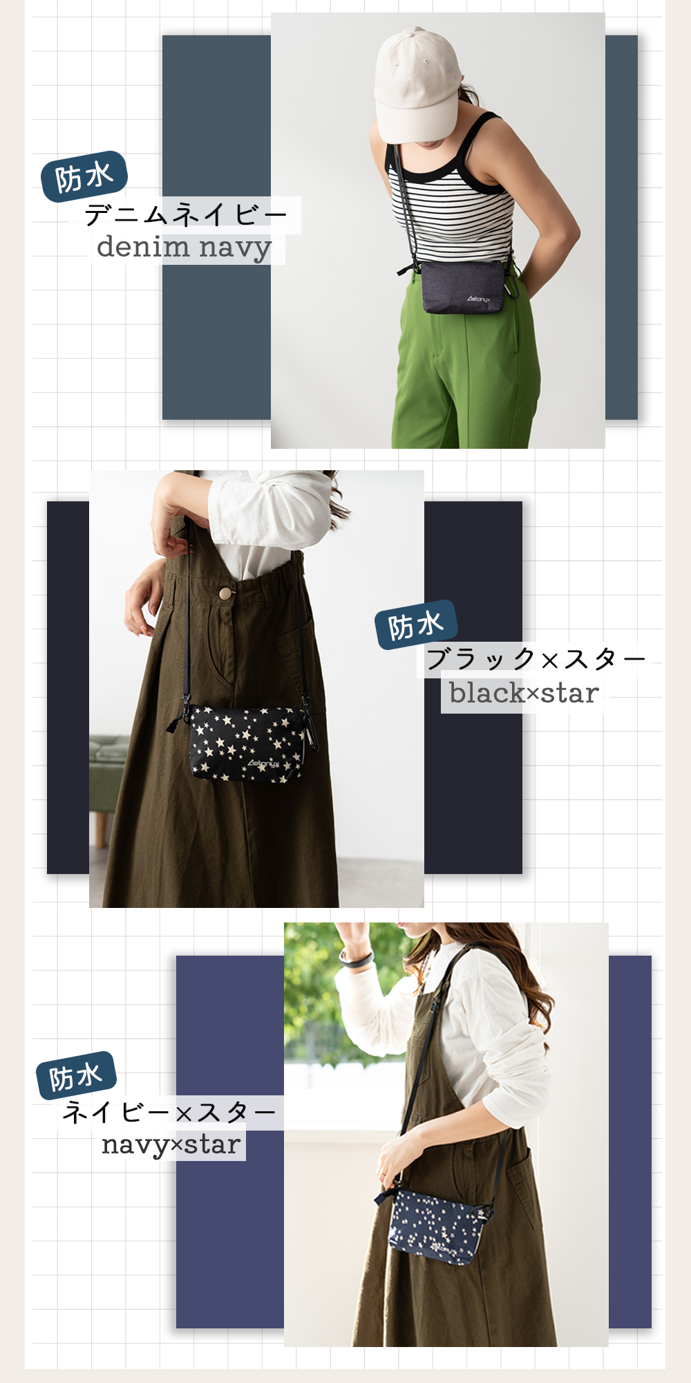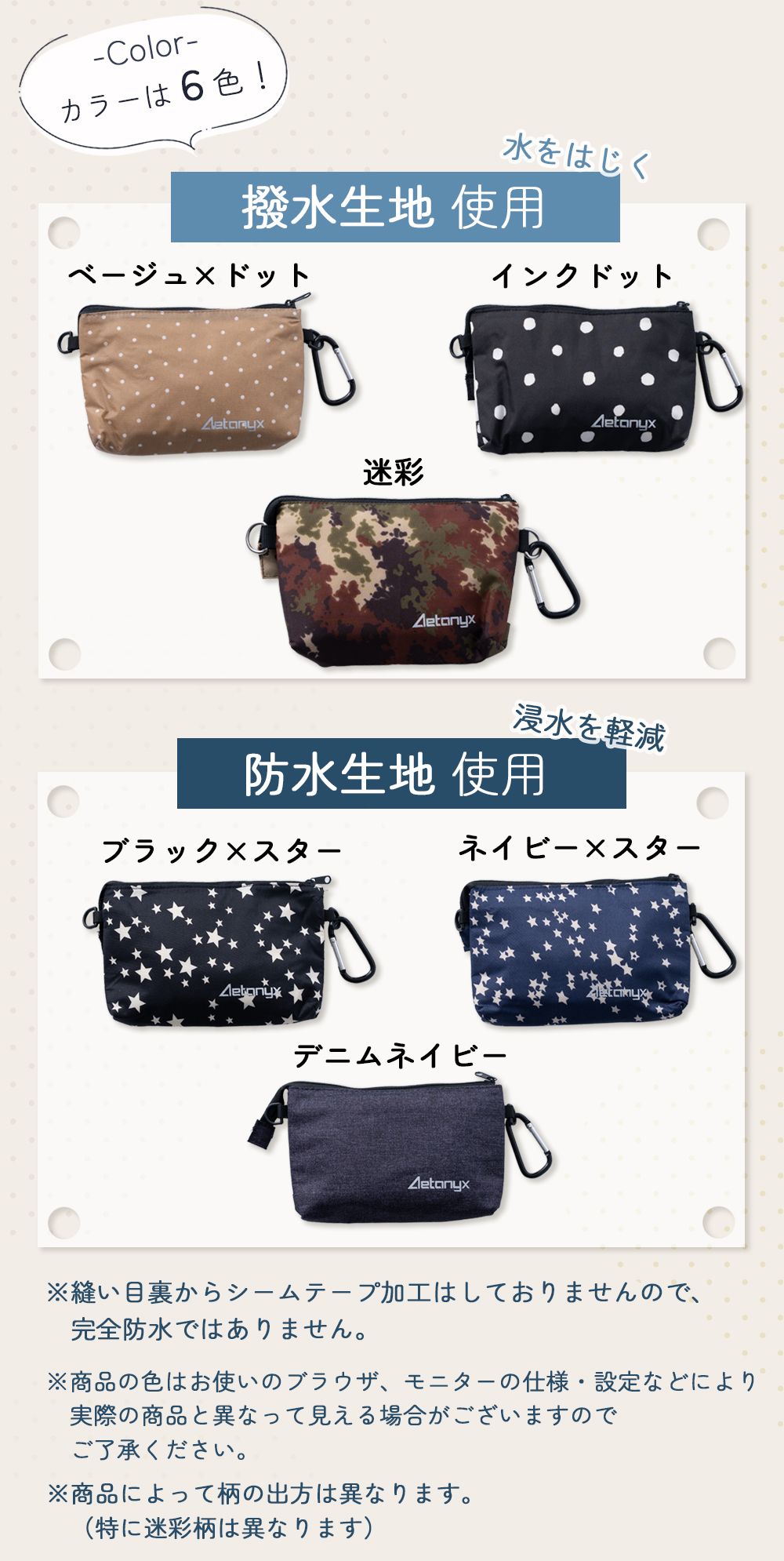 迷彩/インクドット/ベージュ×ドット/デニムネイビー/ブラック×スター/ネイビー×スター