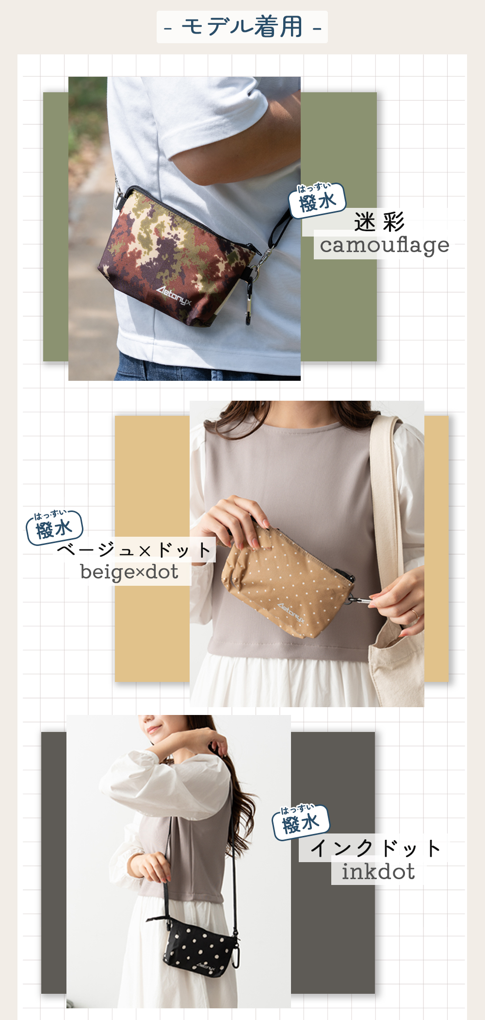 ポーチやショルダーバックとして、またサコッシュやポシェットとしてお使いいただけます。