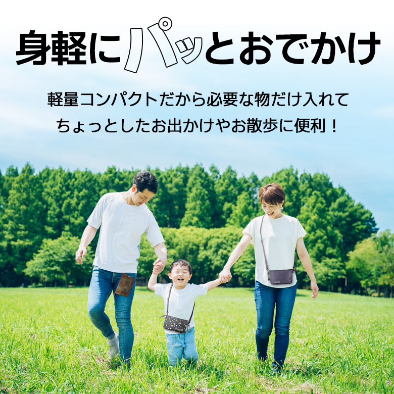 ショルダー紐の長さは調節可能なので、男女問わずお子様から大人まで幅広くお使いいただけます。