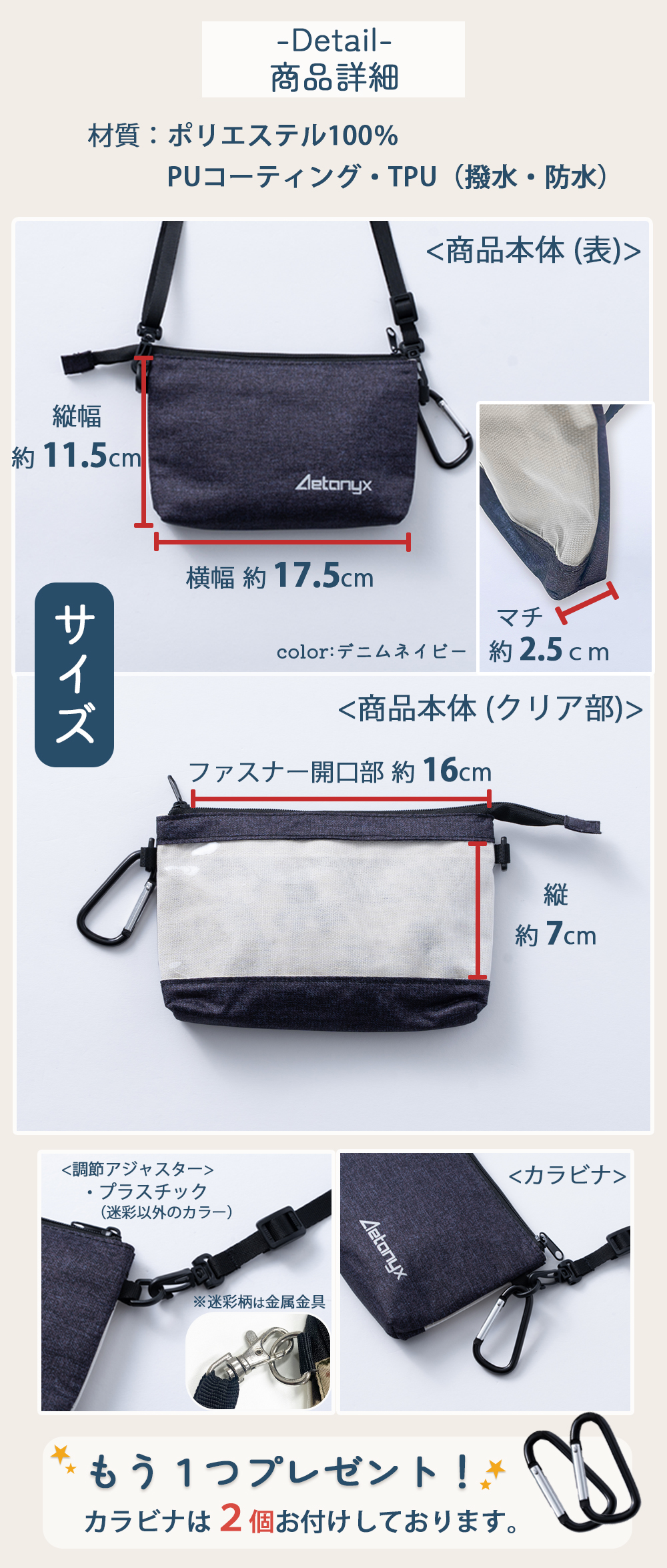 材質:ポリエステル100%/PUコーティング・TPU(撥水・防水生地)