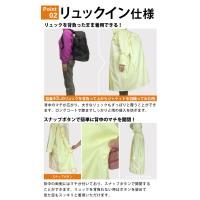 背中にはスナップボタンで広げられるマチがついており、リュックサックを背負いながら着用することができます。丈が長めの作りになっているので、大きなリュックでも下までスッポリと覆えて雨の侵入を防ぐことができます。