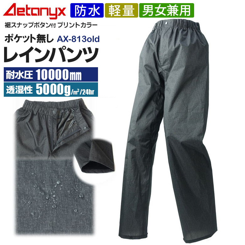 レインパンツ 透湿 防水 ファスナー ポケット無 軽量 登山 釣り 通勤 通学 アウトドア ブラック 男女兼用 メンズ レディース スクール AX-813old アエトニクス