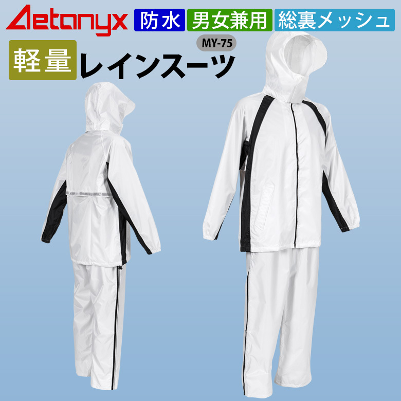 通勤・通学にも使えるレインスーツです。 軽量素材使用の為雨の憂鬱感を減らします。 取り外し可能なフードは前部分が透明になっているので、クリアな視界を確保できます。 背中には反射テープを配置し、夜間の安全性を高めます。 通気口を設けることで汗をかいた時のムレを軽減します。ジャケット・パンツ共に総裏メッシュで汗をかいてもベトつかず快適な着心地が続きます。 S〜5Lとサイズを豊富にそろえました。(袖は半袖ではありません。長袖です。)