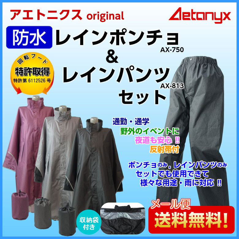 特許取得の回るフードで左右の確認もスムーズ!! 多機能 男女兼用レインポンチョ!縫い目にはシームテープ処理をしているので防水に優れている。 ドルマンスリープの袖なので邪魔になりにくい!さらに両サイドにはポケット付きで鍵や小物を入れれるので便利♪ フード後方のマジックテープにて自分サイズに合わせられる。ひさしの透明部分が見やすい!