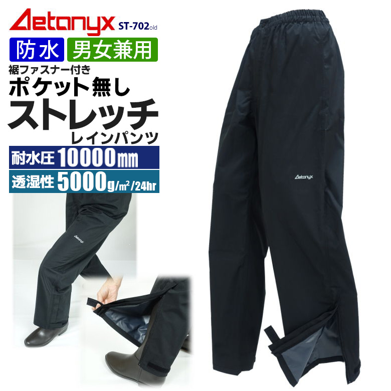レインパンツ ストレッチ 透湿 防水 ファスナー 登山 釣り 通勤 通学 アウトドア レインウェア ブラック 男女兼用 メンズ レディース SS-XXL ST-702old