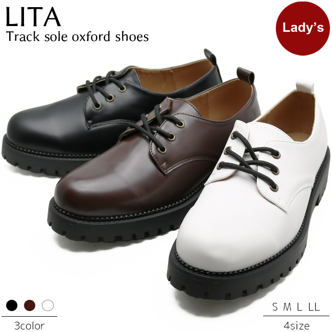 レディース オックスフォードシューズ ドレスシューズ トラックソール 厚底 レースアップ ローファー ブラック 黒 ブラウン 茶色 ホワイト 白 3430