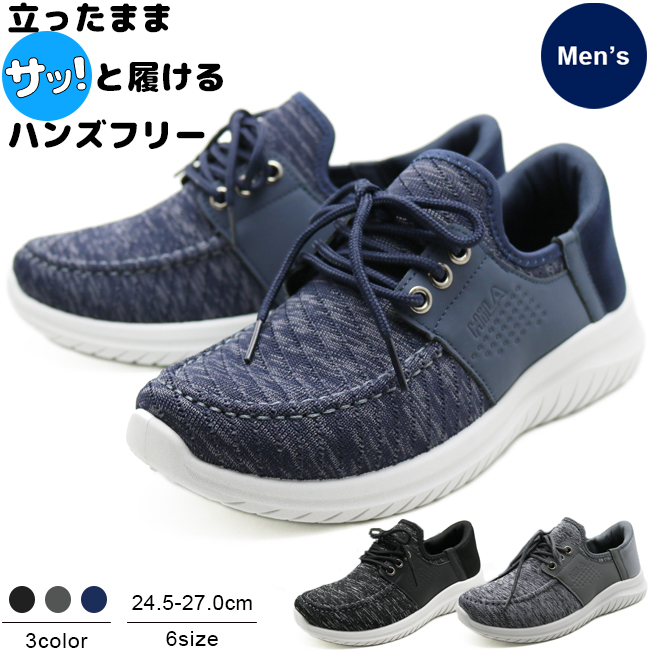 メンズ 手を使わずに履ける ハンズフリー スニーカー シューズ 靴 軽量 スリッポン 手を使わない サッと履ける スポッと履ける 紐なし HM1514