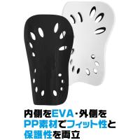 内側をEVA、外側をPE素材とし、肌に当たる柔軟なフィット性と衝撃に対する保護性を両立しています。