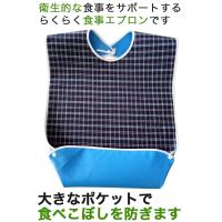 大きなポケットで食べこぼしを防ぎます。食事の際の服の汚れや床への食べこぼしを防止し、衛生的な食事をサポートするらくらく食事エプロンです。