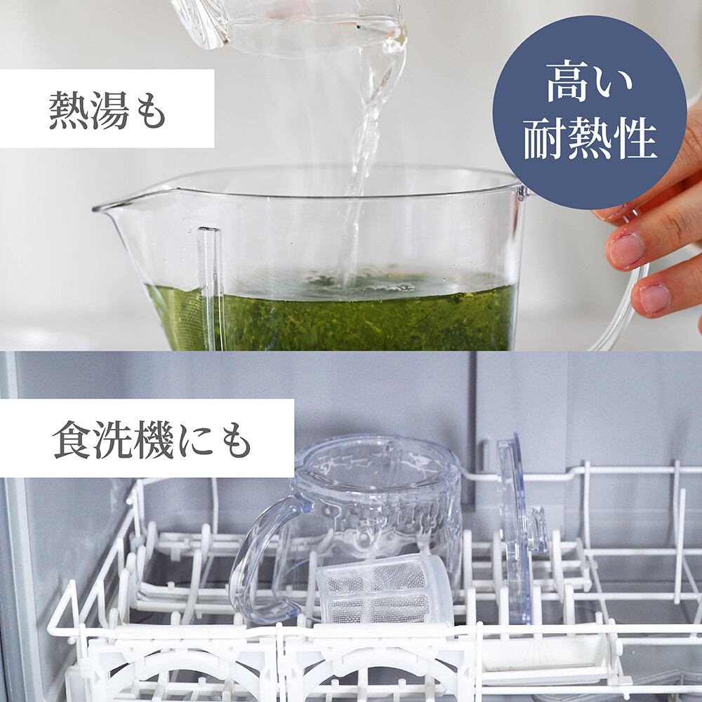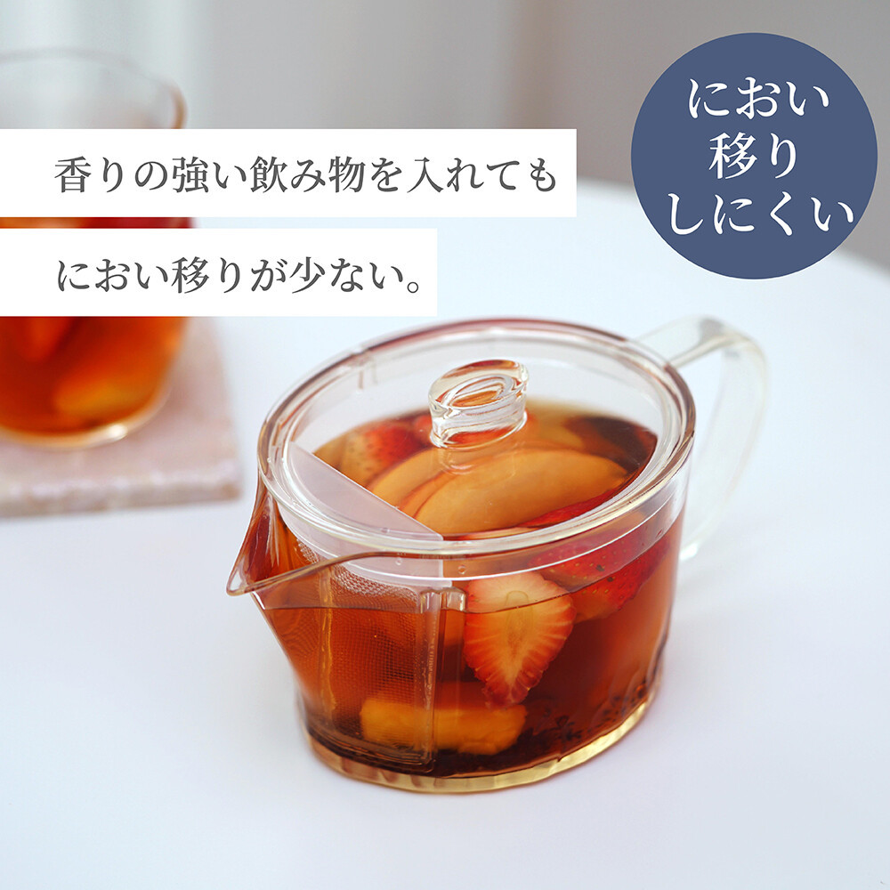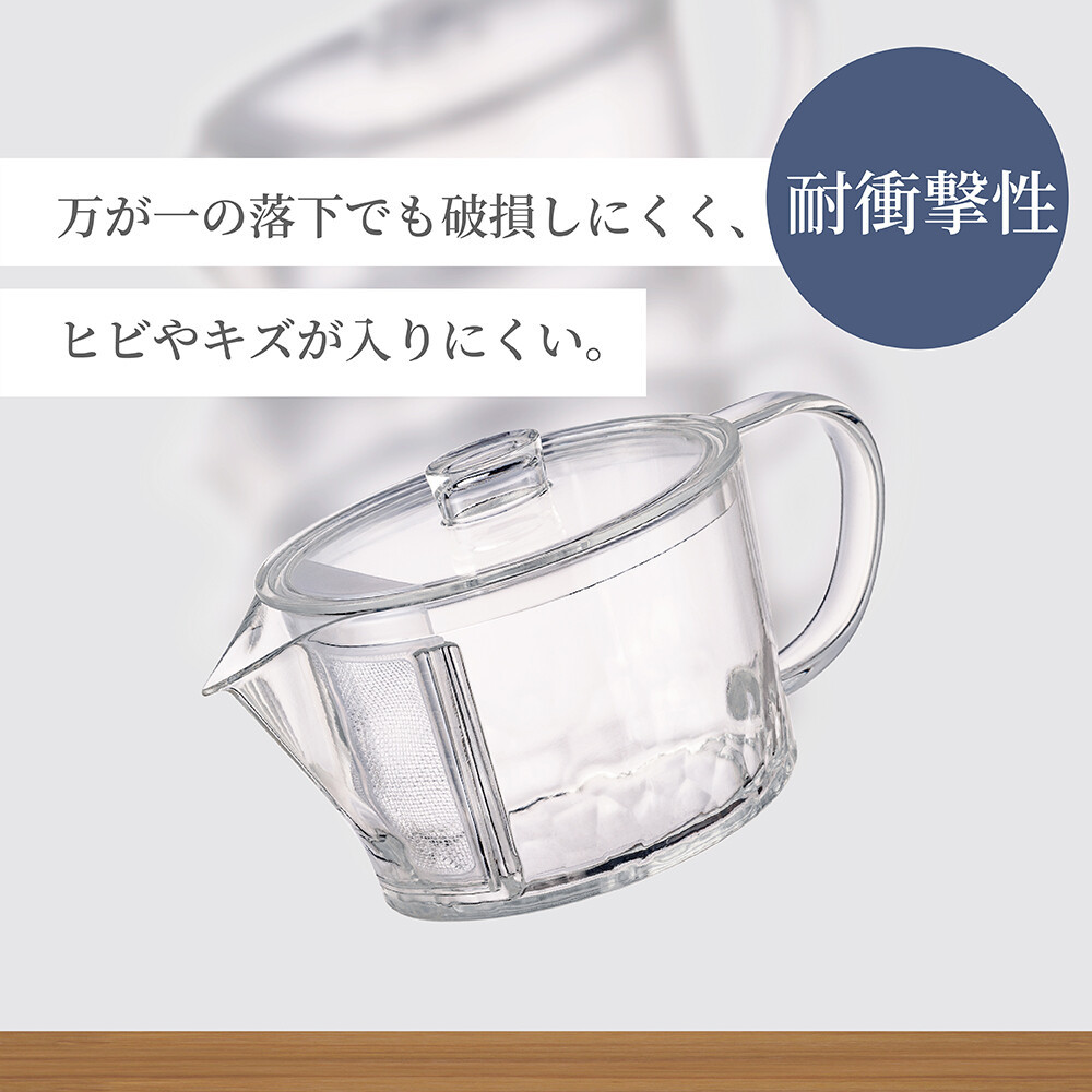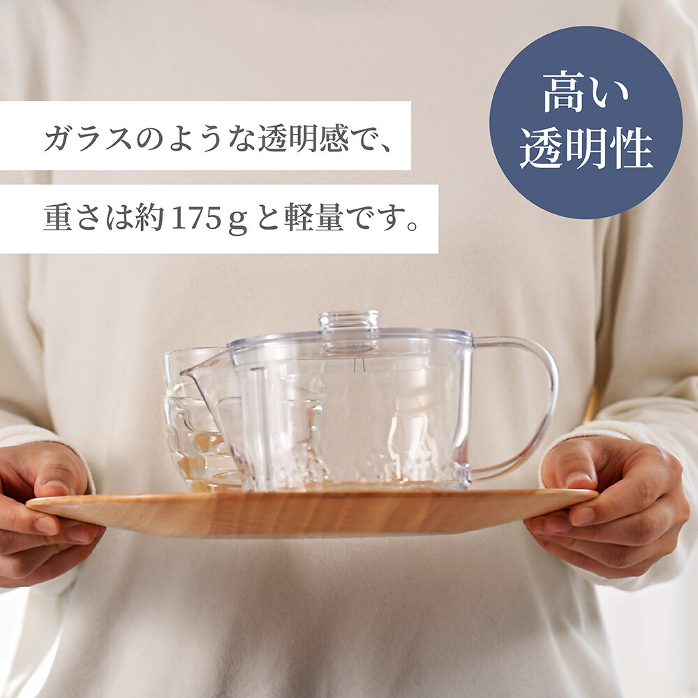 ガラスのような透明感と、BPAフリー・高い耐熱性・高い透明性・耐衝撃性を兼ね備えた安心素材のトライタン製急須。