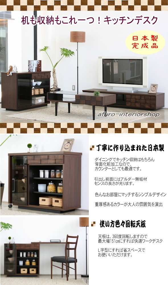 回転キッチンデスク 回る天板 ダイニングカウンター収納 ワークデスク 日本製 完成品 食器棚 間仕切り コルク キッチンデスク cork