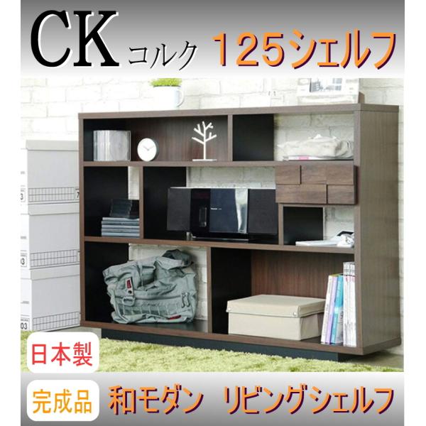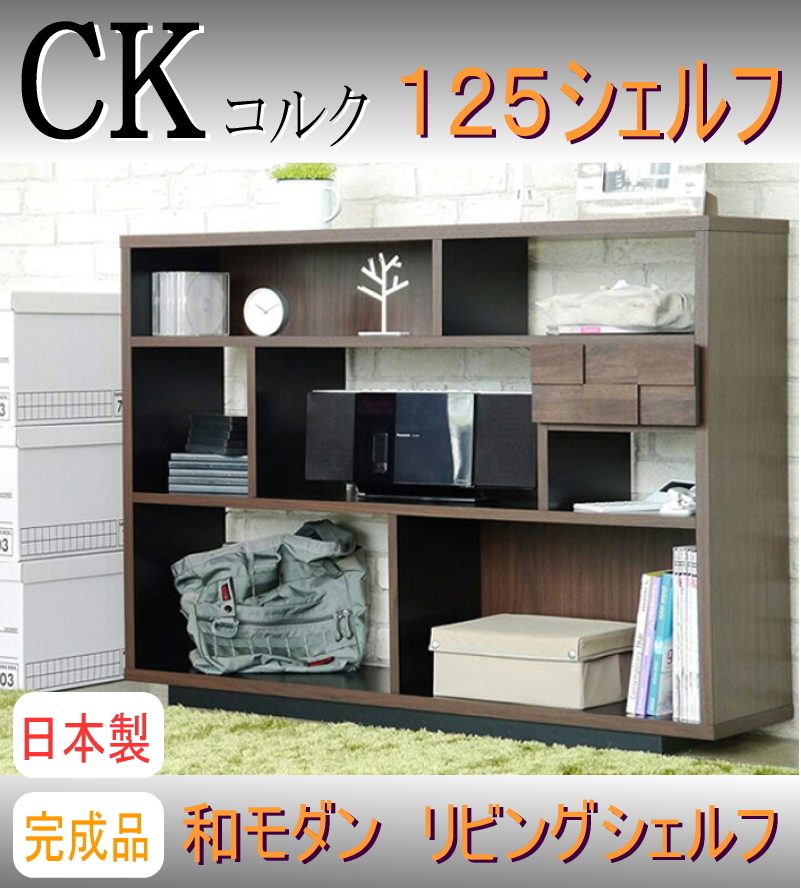 リビング食器棚 キッチンシェルフ 飾り棚本棚 日本製 完成品 背面化粧 間仕切 125cm コルク125 CORK