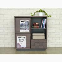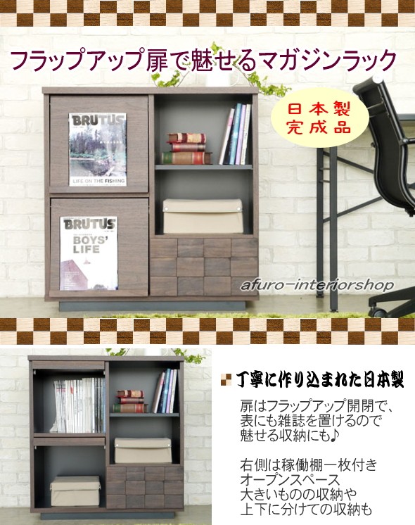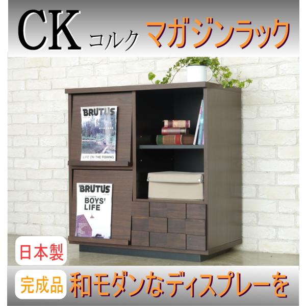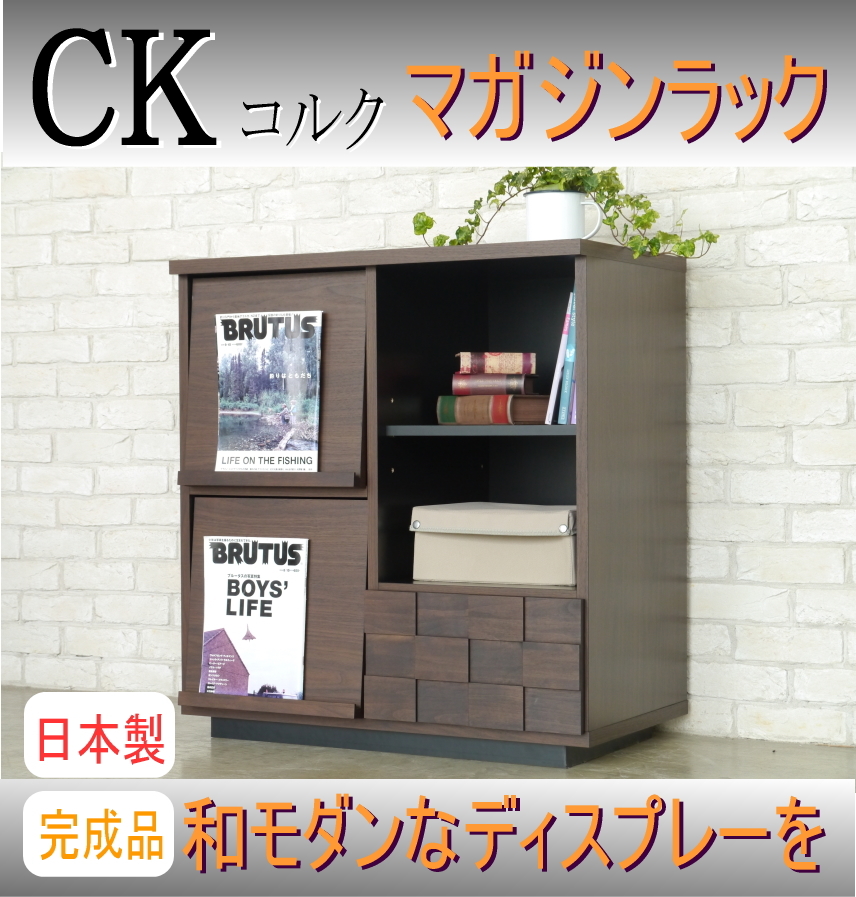 マガジンラック ディスプレー書棚 フラップ扉 収納 日本製 完成品 モダン 幅80cm コルク ck80