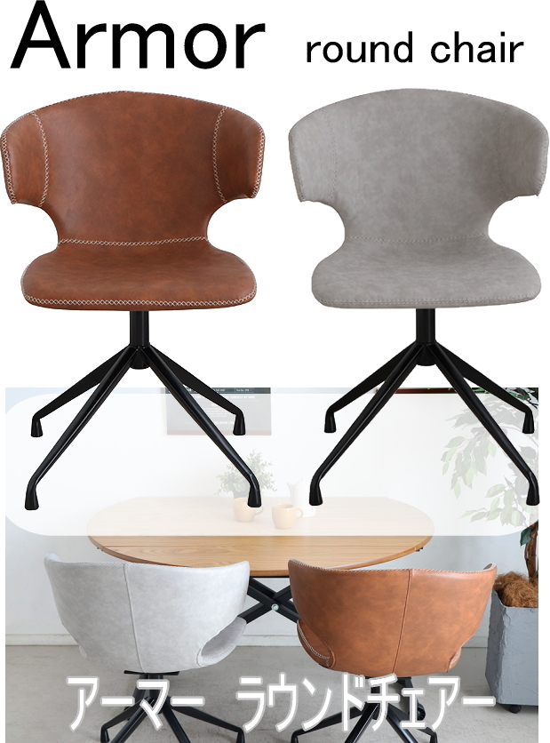 座面と背もたれを一周する手縫いのようなステッチがオシャレなラウンド式のチェア。