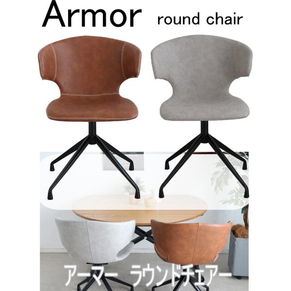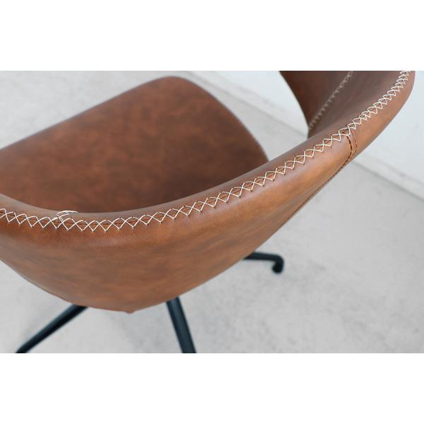 ワークチェアー 回転 ダイニングチェアー レザー&ステッチ調 デスクチェアー アーマーチェアー 東馬 おしゃれ