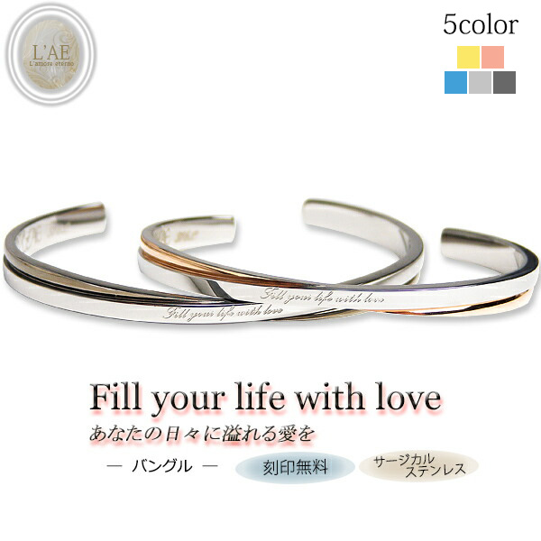| コメント | 大人気のペアリングをバングルにしたクールで可愛いペアバングルです。 シンプルなのにオシャレで重ねづけにもピッタリ! みなさまのお声により、待望のイエローゴールドとブルーも発売いたしました!! 医療用に使われているサージカルステンレスは肌に優しく金属アレルギーでアクセサリーをつけられない方にも安心です。 シルバーアクセサリーより軽くて丈夫で変色しにくい素材です。お手入れも、柔らかい布などでサッと拭くだけいいので、とっても簡単です。 注意:お風呂や温泉などで変色しにくいですが、外していただく事をおススメいたします。 |