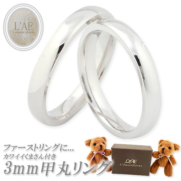 | コメント | シンプルな甲丸ペアリング。 リング幅が3のリングは、シンプル過ぎず普段使いしやすく、指先でいつもお互いを感じらる。 ストラップにもなるかわいいベアー付きで初めてのお揃いのペアリング(ファーストペアリング)にオススメ◎ 彼氏や彼女・大切な人へのサプライズプレゼントやマリッジリング・結婚指輪としてもお使いいただけます。 |