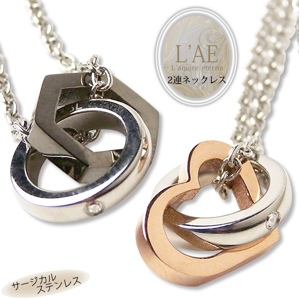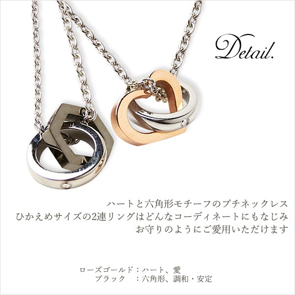 | 商品名 | ペアネックレス ステンレスペアネックレス サージカルステンレスアクセサリー 金属アレルギー対応 ハート 2連 ローズゴールカラー ブラック ペアペンダント 誕生日 記念日 |