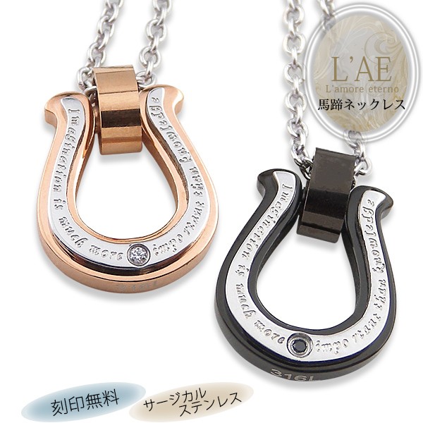 | 商品名 | ペアネックレス レーザー刻印無料 メッセージペアネックレス ステンレス サージカルステンレスアクセサリー 金属アレルギー対応 馬蹄 ローズゴールカラー ブラック ペアペンダント 誕生日にペアネックレス 記念日にペアネックレス |