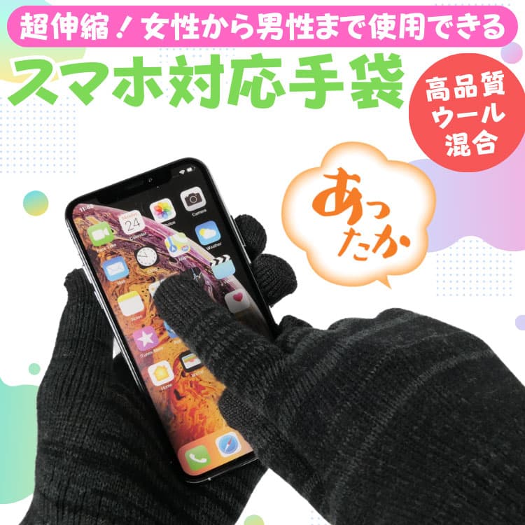 ウール混合 あったか タッチパネル対応手袋 超伸縮 グローブ メンズ レディース 男女兼用 アクリル100% は体の健康:衛生のためやめましょう ネコポス CP2