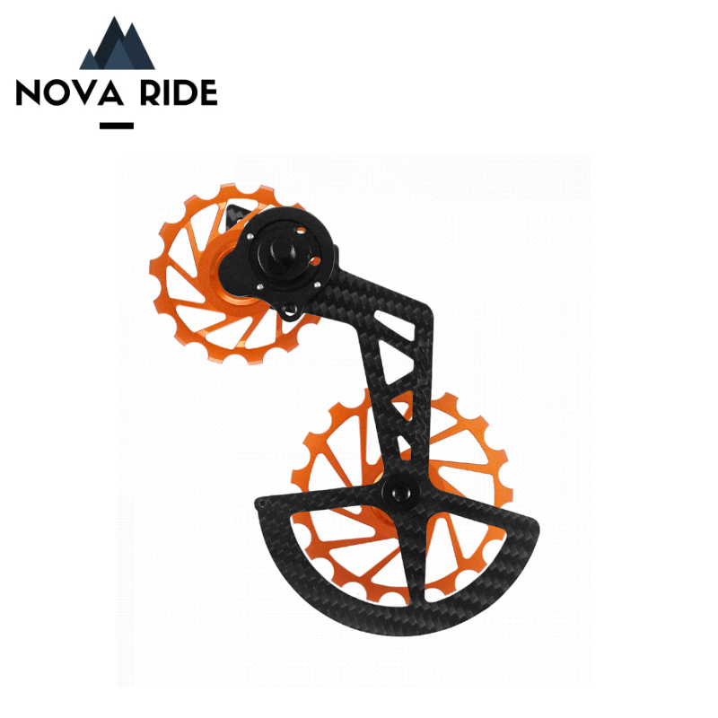 ●NOVA RIDEのフランス人エンジニアによって設計された、リアディレイラー用のこの特大カーボン ケージは、ドライブトレインの伝達を改善し、バイクに彩りを添えます。非常にハイエンドな素材で作られた各部品は長期間使用できるように設計されています。メンテナンスを心配する必要がないように設計された合金カバーで保護された当社のシールドベアリングは、より長い寿命を実現します。