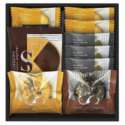 ●商品内容:ごろっとナッツフィナンシェ(バニラ・ショコラ)・ゴーフレット(チョコ)・ほろほろクッキー(チーズ・抹茶)各3 【卵・乳成分・小麦】