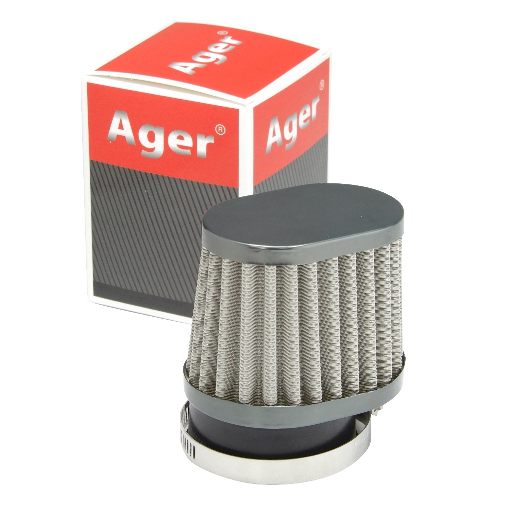 光沢のあるガンメタ色のオーバルパワーフィルターです。メッキ加工済み。