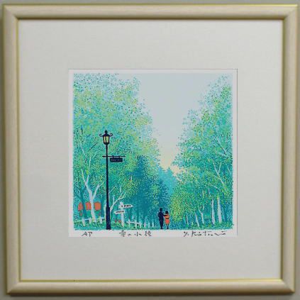 | ◎吉岡浩太郎版画についてシルクスクリーンとジグレスクリーンの2種類の版画技法によって制作されています。 ・シルクスクリーン版画とは、絹の繊細な織布の上に製版し、熟達した高度な摺り技術により 一色ごとに丹念に摺りあげていく多色刷版画です。 ・ジグレスクリーン版画とは、デジタル技法による精密機器を利用したアートでコンピュータにより 色彩分析を行いプリントされています。さらに、耐光性を強まるためにシルクスクリーンによる 表面処理がされています。 ◎エディションとは、作品左下にある限定数をいいます。分母が刷り数で分子が通し番号です。 通し番号に価値の違いはありません。また、追加再販には、Sまたは’があります。 APナンバーは作家所有のエディションナンバーです。 | |