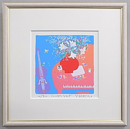 | ◎吉岡浩太郎版画についてシルクスクリーンとジグレスクリーンの2種類の版画技法によって制作されています。 ・シルクスクリーン版画とは、絹の繊細な織布の上に製版し、熟達した高度な摺り技術により 一色ごとに丹念に摺りあげていく多色刷版画です。 ・ジグレスクリーン版画とは、デジタル技法による精密機器を利用したアートでコンピュータにより 色彩分析を行いプリントされています。さらに、耐光性を強まるためにシルクスクリーンによる 表面処理がされています。 ◎エディションとは、作品左下にある限定数をいいます。分母が刷り数で分子が通し番号です。 通し番号に価値の違いはありません。また、追加再販には、Sまたは’があります。 APナンバーは作家所有のエディションナンバーです。 | |