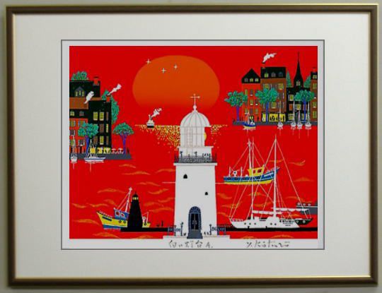 | ◎吉岡浩太郎版画についてシルクスクリーンとジグレスクリーンの2種類の版画技法によって制作されています。 ・シルクスクリーン版画とは、絹の繊細な織布の上に製版し、熟達した高度な摺り技術により 一色ごとに丹念に摺りあげていく多色刷版画です。 ・ジグレスクリーン版画とは、デジタル技法による精密機器を利用したアートでコンピュータにより 色彩分析を行いプリントされています。さらに、耐光性を強まるためにシルクスクリーンによる 表面処理がされています。 ◎エディションとは、作品左下にある限定数をいいます。分母が刷り数で分子が通し番号です。 通し番号に価値の違いはありません。また、追加再販には、Sまたは’があります。 APナンバーは作家所有のエディションナンバーです。 | |