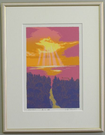 | ◎吉岡浩太郎版画についてシルクスクリーンとジグレスクリーンの2種類の版画技法によって制作されています。 ・シルクスクリーン版画とは、絹の繊細な織布の上に製版し、熟達した高度な摺り技術により 一色ごとに丹念に摺りあげていく多色刷版画です。 ・ジグレスクリーン版画とは、デジタル技法による精密機器を利用したアートでコンピュータにより 色彩分析を行いプリントされています。さらに、耐光性を強まるためにシルクスクリーンによる 表面処理がされています。 ◎エディションとは、作品左下にある限定数をいいます。分母が刷り数で分子が通し番号です。 通し番号に価値の違いはありません。また、追加再販には、Sまたは’があります。 APナンバーは作家所有のエディションナンバーです。 | |
