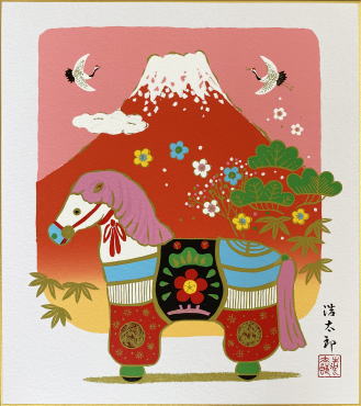 2026年・令和8年の干支色紙 メール便なら送料無料 干支(午年・馬)色紙 2.赤富士 吉岡浩太郎