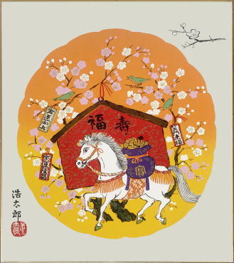 2026年・令和8年の干支色紙 メール便なら送料無料 干支(午年・馬)色紙 5.絵馬 吉岡浩太郎