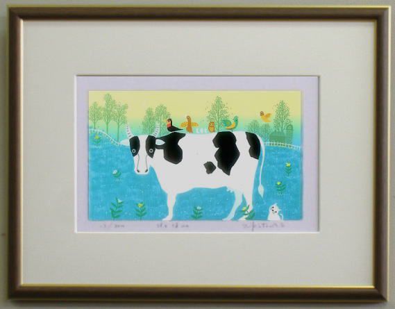 | ◎吉岡浩太郎版画についてシルクスクリーンとジグレスクリーンの2種類の版画技法によって制作されています。 ・シルクスクリーン版画とは、絹の繊細な織布の上に製版し、熟達した高度な摺り技術により 一色ごとに丹念に摺りあげていく多色刷版画です。 ・ジグレスクリーン版画とは、デジタル技法による精密機器を利用したアートでコンピュータにより 色彩分析を行いプリントされています。さらに、耐光性を強まるためにシルクスクリーンによる 表面処理がされています。 ◎エディションとは、作品左下にある限定数をいいます。分母が刷り数で分子が通し番号です。 通し番号に価値の違いはありません。また、追加再販には、Sまたは’があります。 APナンバーは作家所有のエディションナンバーです。 | |