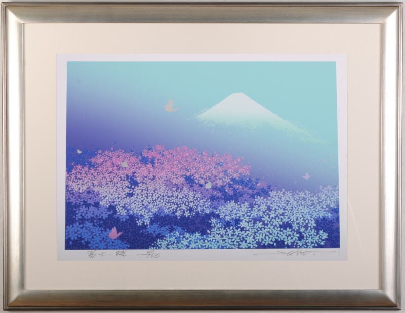 池上壮豊 シルクスクリーン 版画 絵画 絵 富士・蝶 富士山 桜 蝶 額付き インテリア プレゼント 新築祝い 開店祝い