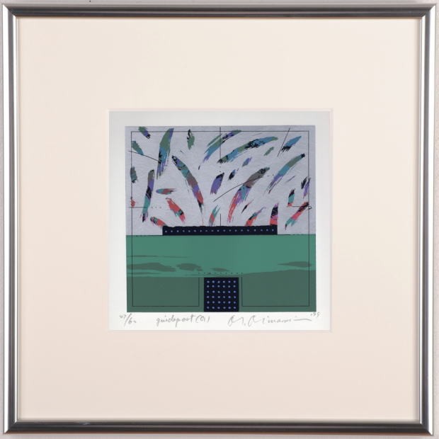 南正雄先生がシルクスクリーンの版画で制作した和モダンの抽象画「ガイドポスト・G」は、1999年に制作された和モダンの抽象画です。