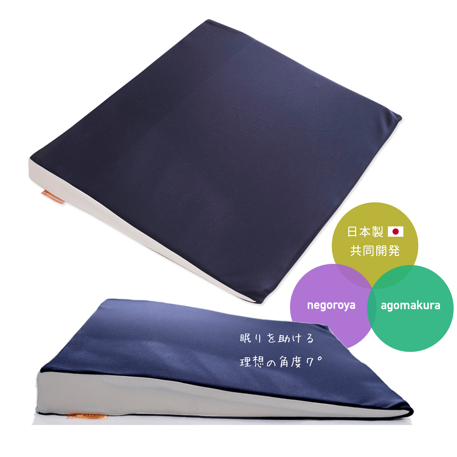 背中から緩やかな角度をつけ上体を持ち上げることにより、 首や肩の負担を軽減させ睡眠を助けるための枕