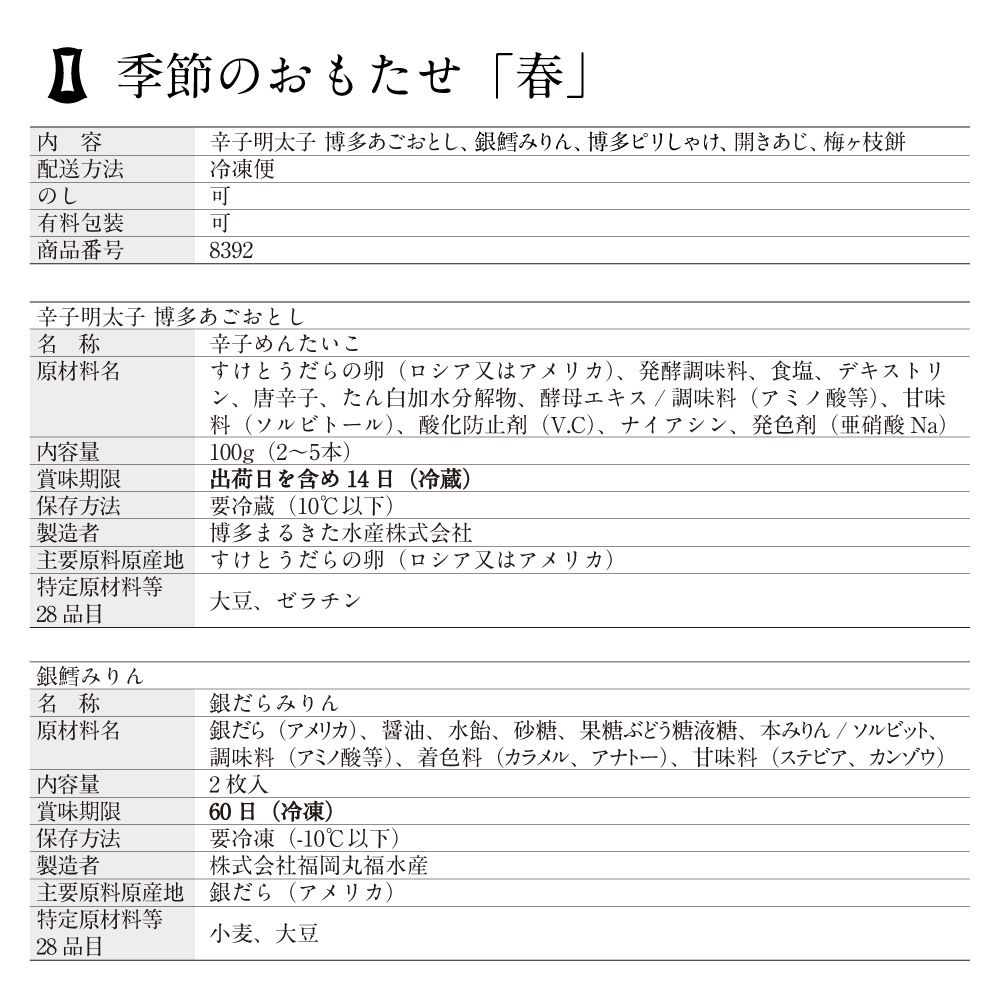 【期間限定】明太子 季節のおもたせ「春」 | 春ギフト あごおとし 福岡 博多 土産 特産品 プレゼント 内祝い 贈り物 贈答 博多まるきた水産 海鮮 ギフト
