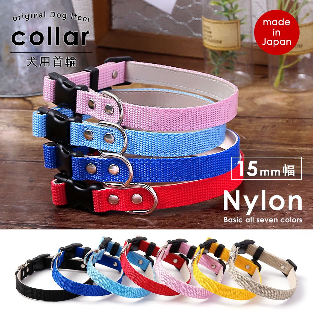 犬 首輪 犬の首輪 おしゃれ 安い 小型犬 ナイロン 軽量 軽い かわいい カラー 15mm