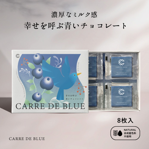 植物油脂不使用 CARRE DE BLUE 8枚入り 幸せを呼ぶ青いチョコレート 天然由来色100% 合成着色料不使用 ギフト 手土産 青 ブルー