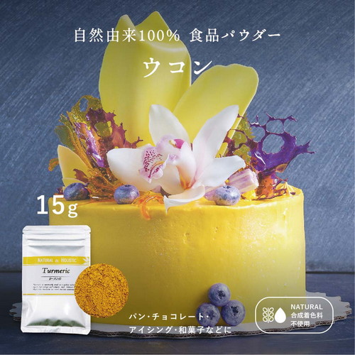 食用色素 黄:ウコン ターメリック パウダー 15g 殺菌済み 天然 着色料 ナチュラル カラフル ハーブ粉末 自然色 お菓子作り 食紅 アソート 送料無料