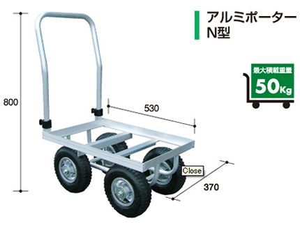 アルミス アルミポーターN型 アルミハウスカー (4輪車) (50キロ積載) (ホイール式運搬車) (アルミ台車) (ハウスカー)