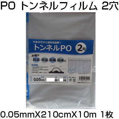 シンセイ 穴あき トンネルフィルム 2穴 0.05mm X 210cm X 10m 農業資材 防霜 保湿 防風 防雨 換気 通気