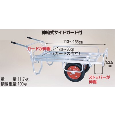 (個人宅配送OK) 台車 100kg 台車 ハラックス CN-65DWS アルミ二輪車 アルミ台車 アルミハウスカー 運搬車(エアータイヤ) コン助 (メーカー直送・代引不可)