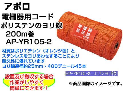 電気柵 ロープ アポロ エリアヨリ線 200m巻 AP-YR105-2 柵線