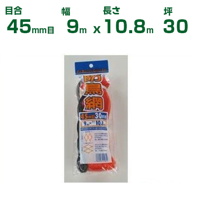 ダイオ化成 防鳥ネット 45mm目 橙 ダイオ防鳥ネット400d 9m×10.8m 30坪 農業資材 園芸用品 家庭菜園 防鳥網 バードネット ガーデニング
