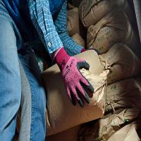 ・ 天然ゴムを手のひらにコーティングした、通気性に優れた背抜き手袋です。
