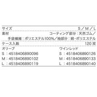 素材:コーテイング部分:天然ゴム、手袋繊維:ポリエステル100%、袖部分:綿、ポリエステル