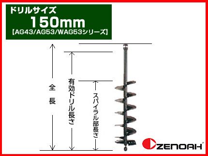 アースオーガー 穴掘り機 エンジンオーガー ゼノア オーガー 専用ドリル 150mm(AG43/AG53/WAG53シリーズ)(穴掘り機 穴掘機 掘削機 アタッチメント)